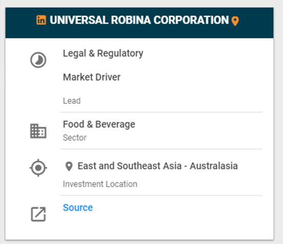 In December 2015, Conway Analytics delivered a Lead Signal which announced that Universal Robina was considering the expansion of its business through acquisition and organic growth in Southeast Asia.