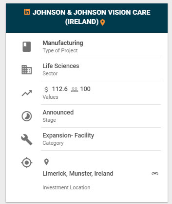 Johnson & Johnson Vision Care has announced the expansion of its contact lens manufacturing plant in Limerick, Ireland. The $113 million expansion will create 100 new jobs focused on manufacturing, engineering and quality control. Johnson & Johnson Vision Care is headquartered in Jacksonville, Florida, and designs, manufactures and markets the Acuvue range of soft disposable contact lenses.