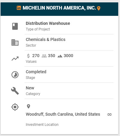 Michelin recently opened its largest U.S. warehouse and distribution center in Woodruff, South Carolina. The new $270 million facility encompasses 3 million sq. ft. and has the capacity to handle over 4 million tires per year. The 24/7 operation will create 350 new jobs. Michelin North America operates 19 plants and employs 22,000 people.