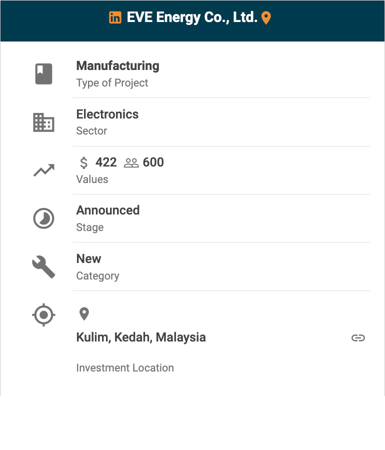 On the very same day as the announcement above, EVE Energy Malaysia Sdn.