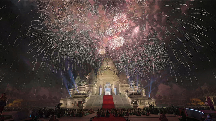 Today is the second day of the Diwali holiday honored by Hindus, Sikhs, Jains and some Buddhists around the world as a celebration of light over darkness and good over evil. One place sure to be in full celebration mode is the BAPS Swaminarayan Akshardham in Robbinsville, New Jersey, where this photo was made during a celebration of its grand opening in October after 12 years of development.