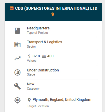CDS Superstores and its retail brand The Range are building a new $32-million headquarters in Plymouth. The new facility will create 400 new jobs. The company operates 158 stores across the UK and Ireland. The Range has become well known in the British Isles, carrying over 65,000 products across a variety of home, garden and leisure categories. The firm’s owner, Chris Dawson, has indicated that he would like to open 1,000 similar stores across Europe.