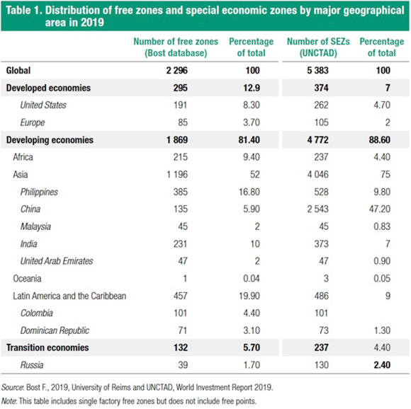 “A count carried out in 2019 listed no less than 82 different terms to designate zones, the majority of which are used in a single country,” Bost wrote in a 2019 “Transnational Corporations” article. “The reason for this ‘terminological anarchy’ is threefold. First, a lack of knowledge about the terminology used by different countries. Second, the desire of many countries to stand out from the rest by proposing different terms that more accurately reflect local realities. Third, the aspiration to present these SEZs in a more modern way (for instance, to take advantage of the vogue for ‘technology parks’), and at the same time to veil the bad reputation of free zones during the 1970s and 1980s.”