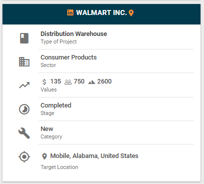 Walmart has announced the opening of one of its largest distribution centers in Mobile, Alabama. The new 2.6-million-sq.-ft. facility cost $135 million and is set to open with 750 new jobs. The facility will serve 700 stores in the south/central U.S. The Mobile distribution center will process a large portion of imported goods due to proximity to the Port of Mobile.
