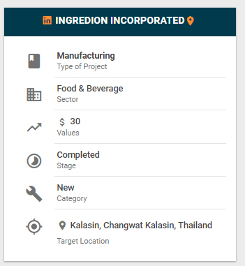 Lead Signal: In August 2016, Conway Analytics delivered a Lead Signal indicating that Ingredion had announced further expansion around the world based on strong financials. Expansion would include organic growth and acquisitions in the Asia-Pacific and EMEA regions.