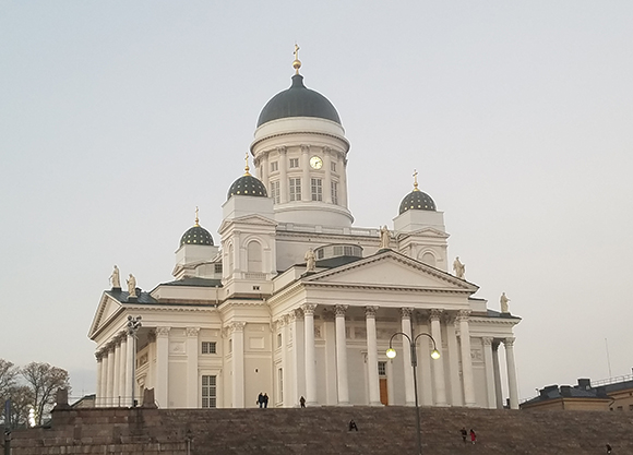 Andrew Clutz, director, corporate investment & analytics, for Conway, Inc., recently made this photograph of Helsinki Cathedral, designed by Carl Ludvig Engel and completed in 1852. Located on the northern side of Senate Square, the church was once called St. Nicholas Cathedral, after Russian Czar Nicholas I, who initiated the building project, and St. Nicholas, the patron saint of seafarers. The church has long been a landmark for those arriving by sea. The wide granite staircase is thought to be the highest north of the Alps.