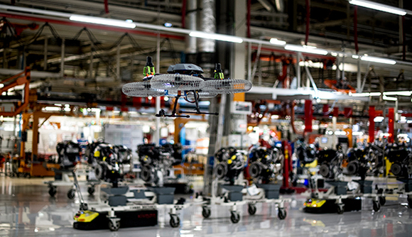 with the indoor drones to improve parts transportation both inside and