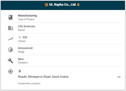 GL Ralpha Co., a Korean company that manufactures biological drugs, has signed an agreement with the Saudi Arabian Investment Authority that will allow the company to invest $320 million to establish operations in Riyadh, Mintaqat ar Riyad, Saudi Arabia. The project will include a facility that will be used to manufacture 30 biotechnology products, covering all stages of manufacturing. This project is the first of its kind in Saudi Arabia, and represents the interest of the Kingdom in exploring investment opportunities that are likely to shape the Saudi healthcare sector.