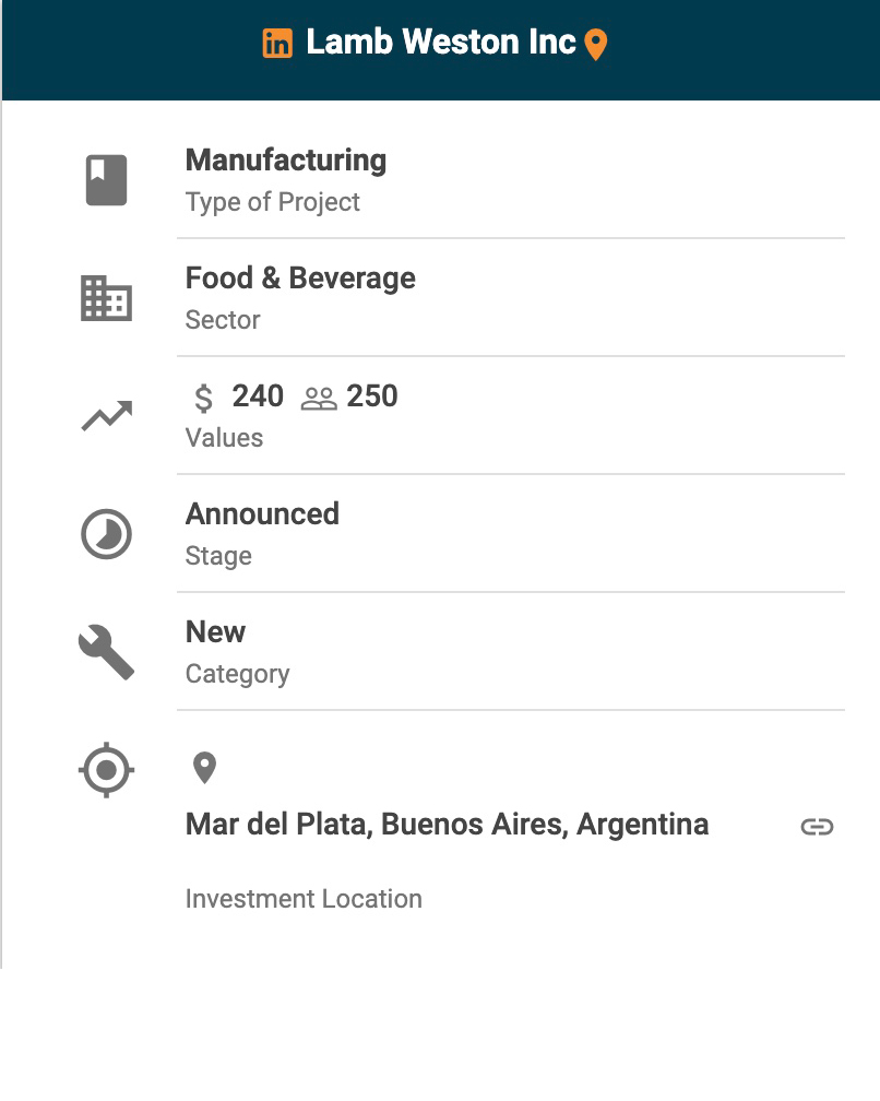 construction of a new manufacturing facility in Mar del Plata, Buenos
