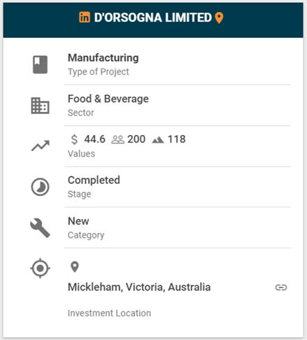 D’Orsogna Limited has recently opened a 118,000-sq.-ft. food manufacturing facility in Victoria, Australia. The $44.6 million investment will allow the food manufacturing company to expand capacity to produce cured and cooked hams, gourmet continental goods, bacon and cooked sausages. The new facility will employ 200 people.