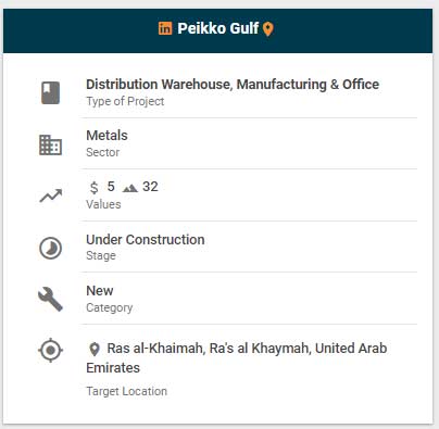 Peikko Gulf is building a new concrete and composite manufacturing facility in Ras al Kaimah, United Arab Emirates. The new $5-million facility and warehouse will occupy 32,000 sq. ft. and will be operational in early 2019. The new facility will supply the growing number of building construction projects in the UAE and Saudi Arabia. Peikko, a supplier of concrete connections and composite beams, is headquartered in Lahti, Finland, and manufactures in seven countries.