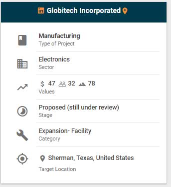 Globitech has proposed a $47-million expansion of its Sherman, Texas, facility that manufactures silicon epitaxy products for the semiconductor industry. The expansion would add 78,000 sq. ft., 10,000 of which would be a clean-room facility. The expansion will add 32 new jobs at the site. Tax abatements and incentives were approved in August by Grayson County commissioners, the Sherman City Council and the board of Sherman Economic Development Corp.