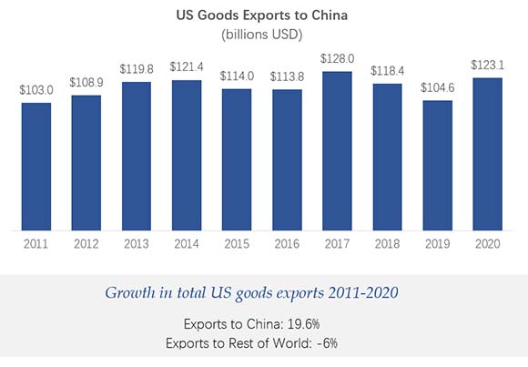 findings: U.S. goods exports to China grew by roughly 18% in 2020, up