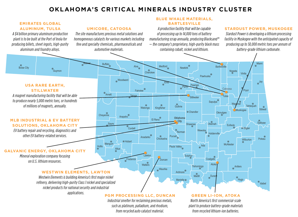 Oklahoma’s quality of life and low costs of living and doing business will appeal to more critical minerals companies going forward, Budd predicts, as they already have in aerospace, energy and other key industries. “We’re aiming to be the critical minerals hub for the United States when it comes to onshoring and streamlining those supply chains.”
