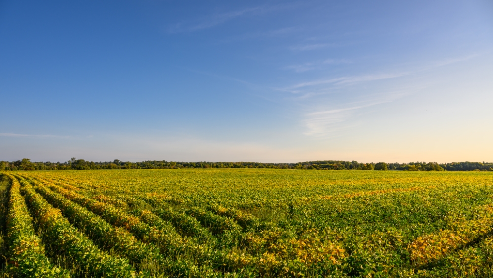 A soybean field in Ontario, known for its deep roots in agribusiness.