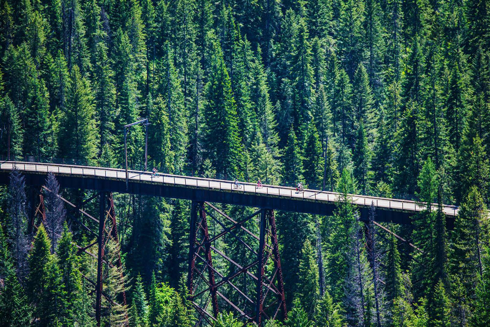 Asked to highlight specific rail-trail corridors that have spurred economic development, Lawson says by email, “A great example of a region developing around rail-trails is the panhandle of Idaho. The Route of the Hiawatha [15 miles] and Trail of the Coeur d’Alenes [73 miles] run from the Montana to Washington border. It’s brought a lot of revitalization to these areas, especially Wallace, Idaho.”