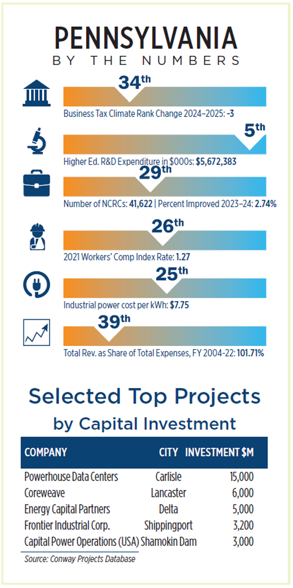 First Energy followed Blackstone with a $15 billion investment to expand power distribution and grid enhancements that will impact 56 Pennsylvania counties, while Pennsylvania Data Center Partners and Powerhouse Data Centers plan to construct a $15 billion, 1.3-gigawatt three-campus data center hub near Carlisle. An agreement in principle between Homer City Redevelopment and EQT Corporation will see the purchase of $15 billion worth of Pennsylvania natural gas for more than 4 gigawatts of power generation to the Homer City Redevelopment site, creating 1,000 jobs.