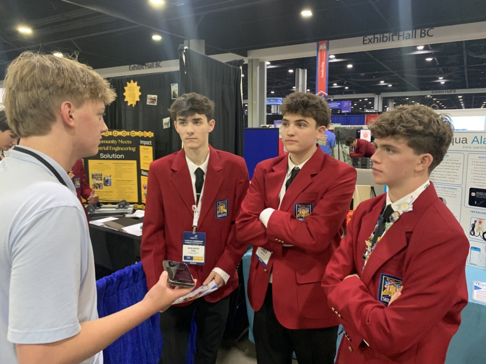 In an exhibition area that resembled a real-world science fair, we talked to three students from Burrillville High School in Rhode Island who were returning to the national competition after having placed third the year before.