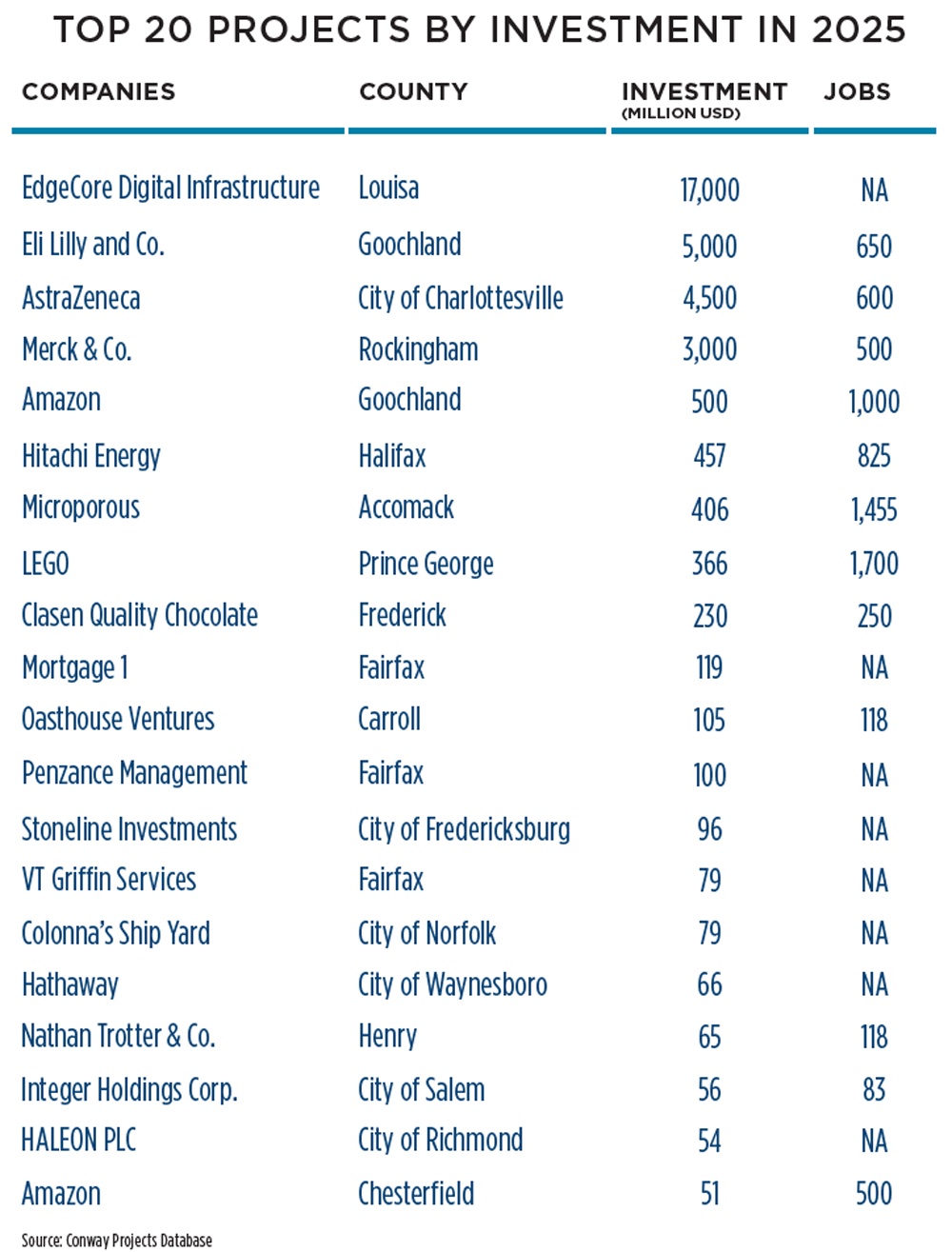 In October, Merck began construction on its $3 billion, 400,000-sq.-ft. pharmaceutical manufacturing facility in Elkton, in the Shenandoah Valley east of Interstate 81, where it has operated for more than eight decades. The company says it is building “a state-of-the-art pharmaceutical Center of Excellence that will include both Active Pharmaceutical Ingredient and Drug Product investment supporting small molecule manufacturing and testing and will potentially create more than 500 full-time roles as well as 8,000 construction jobs.”