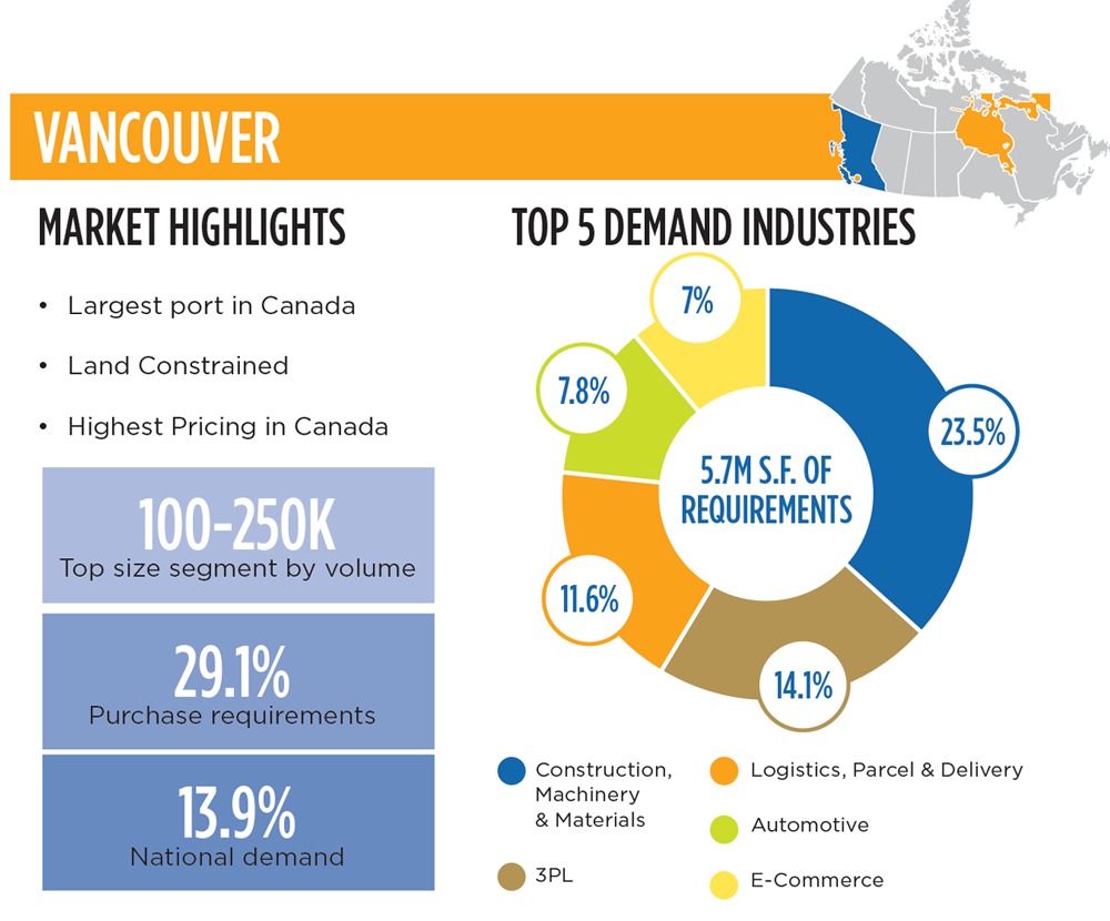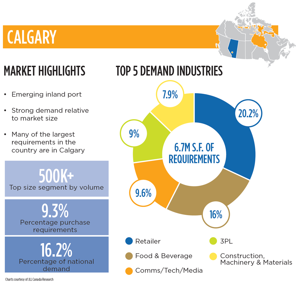 The report looks at six Canadian industrial markets, including three in Western Canada — Vancouver, Calgary and Edmonton. This is the region showing the strongest demand in the coming year with Calgary in particular punching above its weight class.
